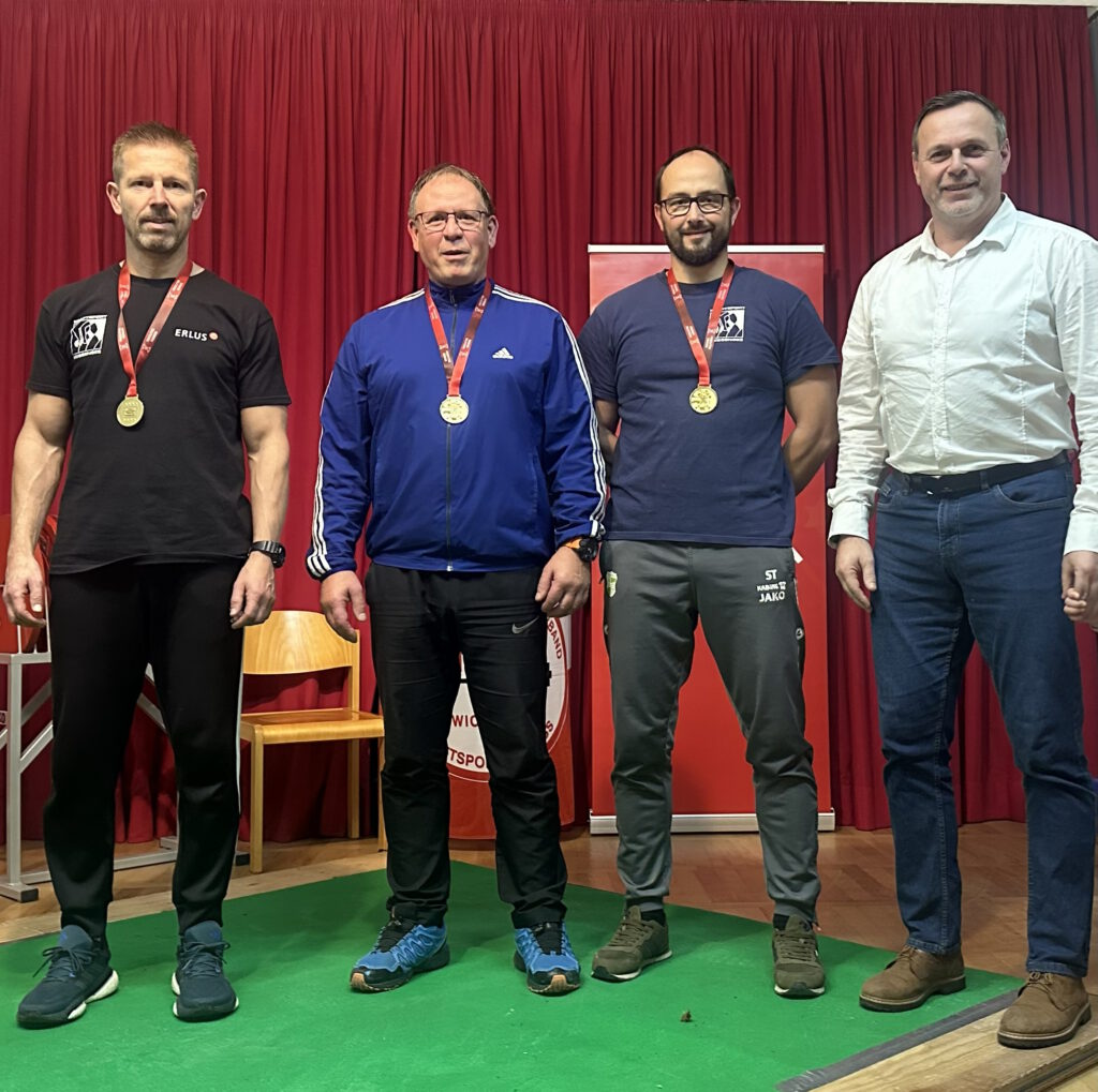 Bevor die Sieger gekürt wurden, zeichnete der TAV-Präsident 3 aktive langjährige Helfer und Unterstützer des Vereins für über 10 Jahre Einsatz bei Wettkämpfen des KSV aus. Mit Jörg Neumann, Uwe Szugger und Sebastian Till wurden mit der Ehrenmedaille in Gold des TAV geehrt. Als Scheibenstecker und Hallensprecher waren sie am Samstag im Einsatz, sind aber das ganze Jahr verlässliche und unverzichtbare Stützen des KSV, ohne die ein solcher Wettkampf wie am Samstag nicht stattfinden könnte und ein Sportverein sicher nicht existieren könnte. Danke.